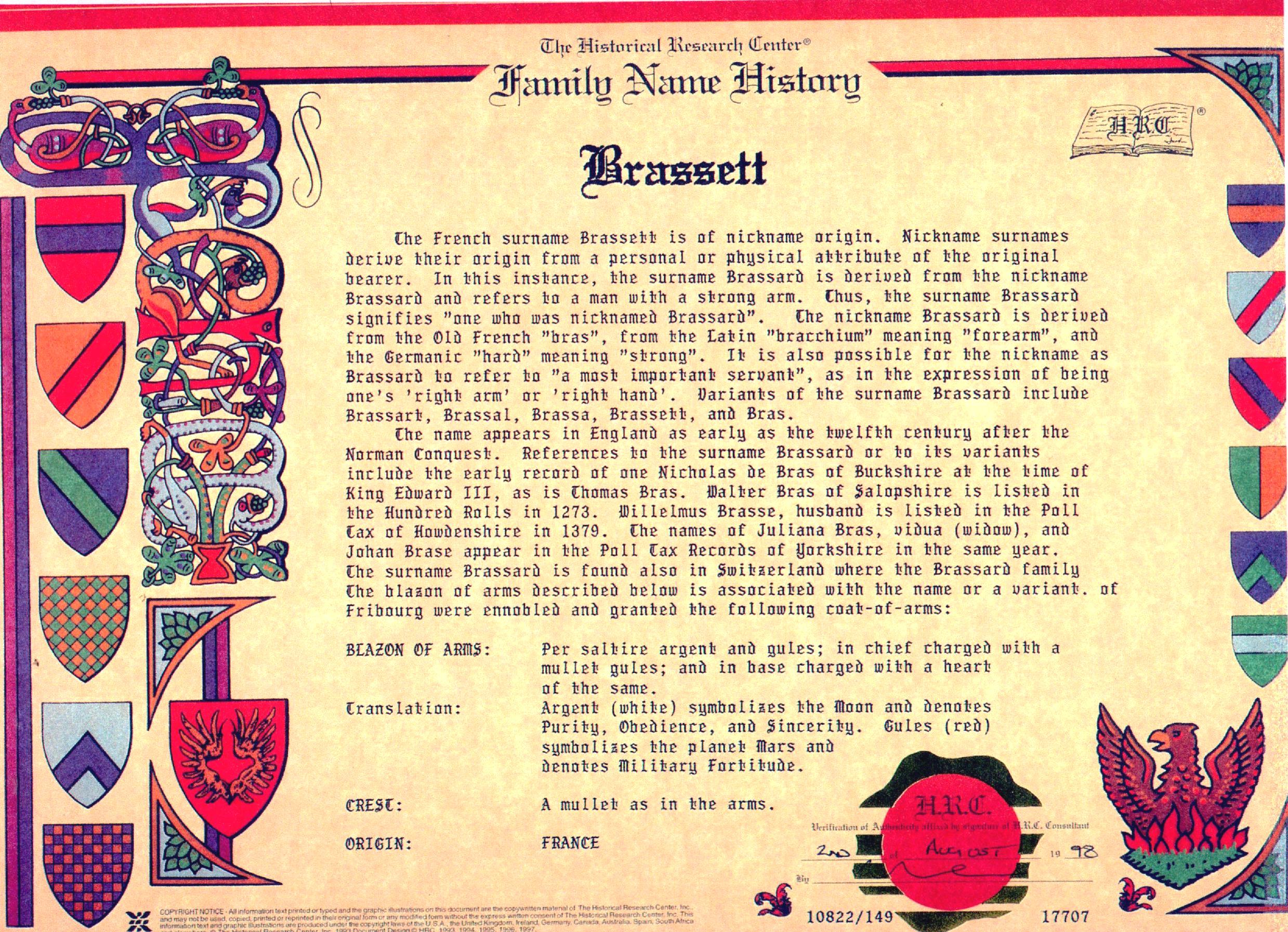 www.Brassett.net Home Origins Crest SCROLL This may not be the only Scroll, If you have another email it to me